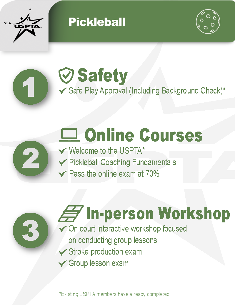 This certification, modeled after our successful tennis certification protocols and designed with the assistance of pickleball experts and teaching professionals, is not just a learning opportunity but a chance to be inspired by the best in the game.